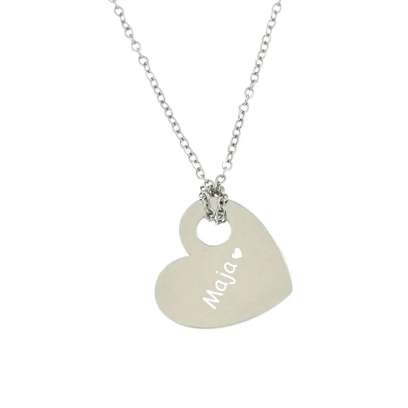 Très joli pendentif cœur en acier inoxydable personnalisable au recto/verso, la première gravure diamant est offerte. Ce mignon pendentif est accompagné de sa jolie chaîne assortie nouée à une partie du cœur, réglable à l’aide d’une rallonge d’anneaux adaptée qui permet de porter ce bijou plus près du cou pour plus de style. Il sera un cadeau très apprécié des femmes et des enfants.
