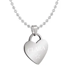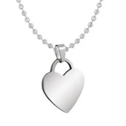 Moderne pendentif coeur en acier inoxydable poli à personnaliser avec un prénom, une date ou encore un symbole grâce à la première gravure diamant offerte. Une chaine assortie est disponible en option. Offrez en toute occasion ce joli pendentif coeur à graver!