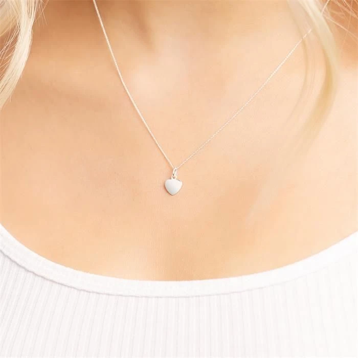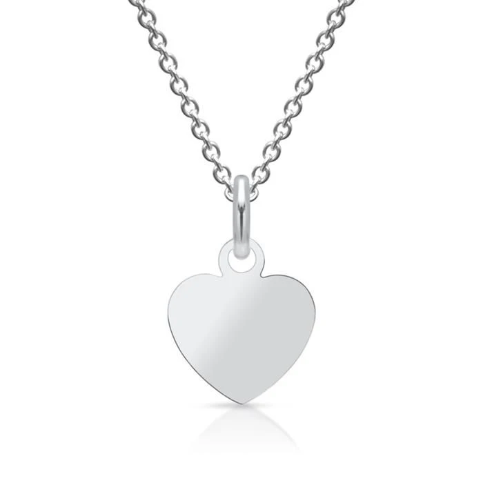 Moderne pendentif coeur gravable en argent massif 925 avec sa chaine assortie de 36, 40,45 ou 50cm. Une gravure diamant est offerte.