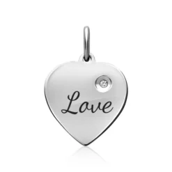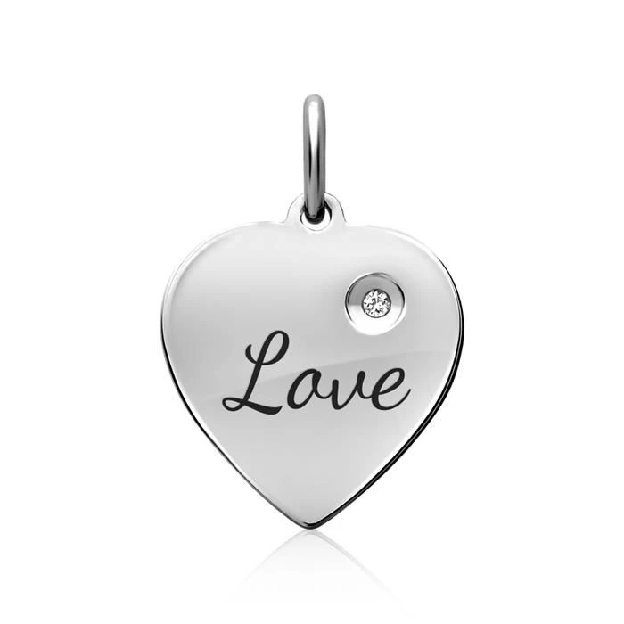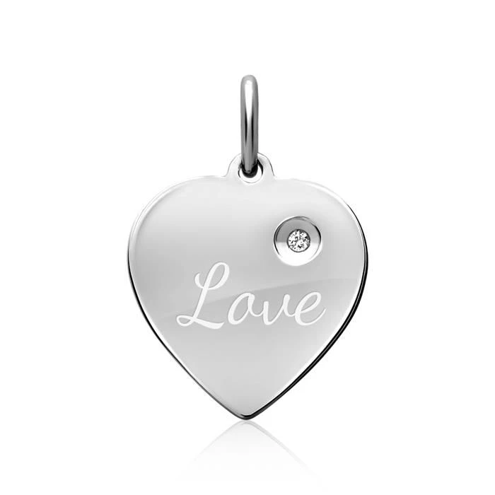 Moderne pendentif coeur en argent massif 925 avec un zirkonium, et sa chaine assortie de 40,45 ou 50cm en option. Une gravure laser est offerte.