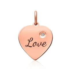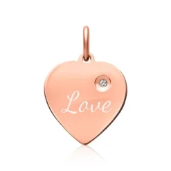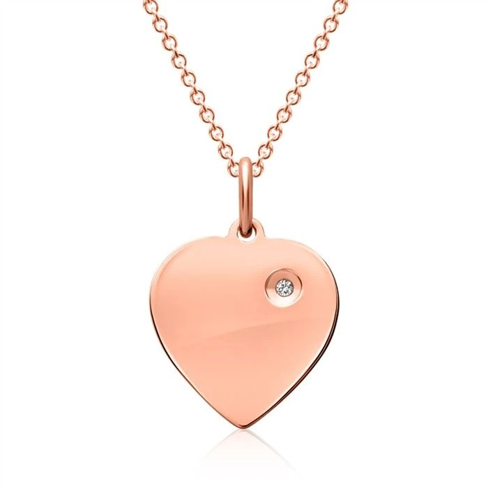 Moderne pendentif coeur en argent massif 925 plaquage or rose 1 micron avec un zirkonium, et sa chaine assortie de 40,45 ou 50cm en option. Une gravure laser est offerte.
