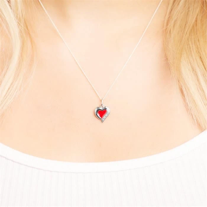 Elégant pendentif coeur rouge en argent massif 925. La gravure diamant est offerte. Vous pouvez commander en option une chaine assortie.
