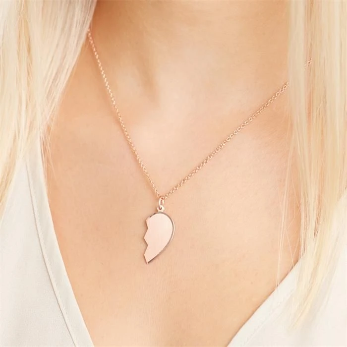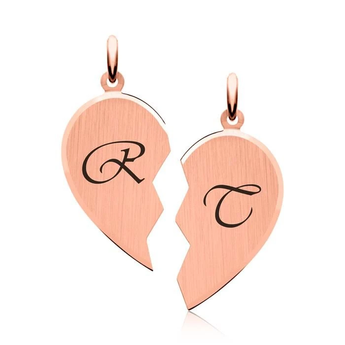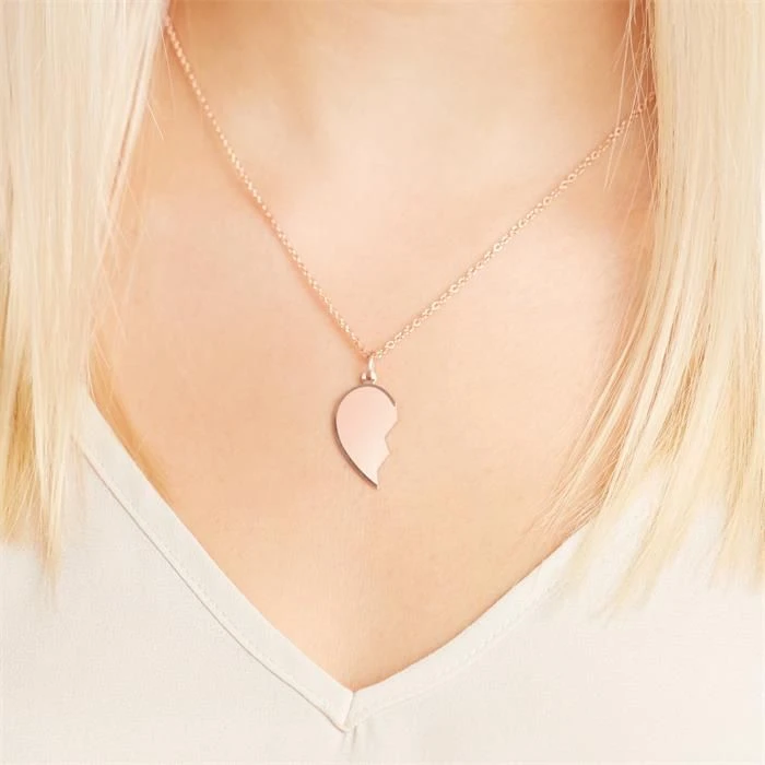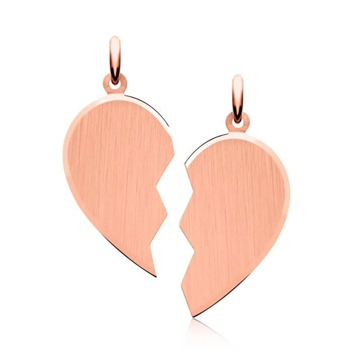Romantique pendentif coeur sécable en argent 925, rosé. Il est le cadeau idéal pour être au plus près de votre « moitié ». Les deux parties sont gravables au recto et au verso. Une jolie chaine assortie est disponible en option.