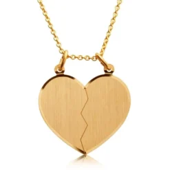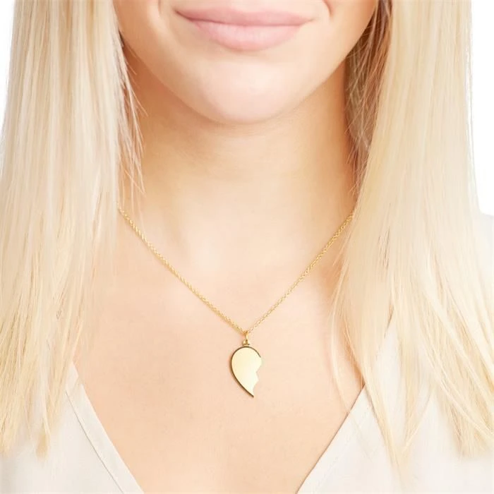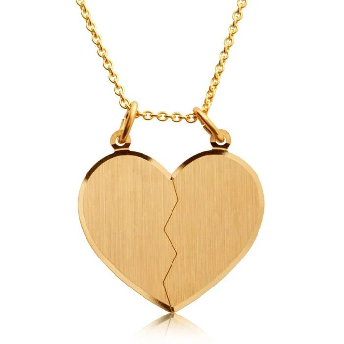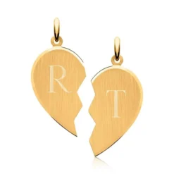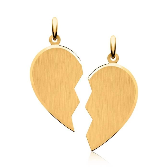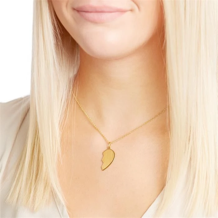 Romantique pendentif coeur sécable en argent 925, doré. Il est le cadeau idéal pour être au plus près de votre « moitié ». Les deux parties du coeur peuvent être gravées au recto et au verso. Une jolie chaine assortie est disponible en option.