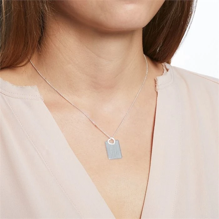 Très joli pendentif rectangulaire au motif cĹ“ur en argent 925. Personnalisable au recto/verso avec une première gravure offerte. Il est très apprĂ©ciĂ© des femmes. AccompagnĂ© de sa jolie chaĂ®ne en option, il apportera un effet Ă votre dĂ©colletĂ© de toute beautĂ©. Il pourra faire l’objet d’un cadeau d’anniversaire rĂ©ussi.