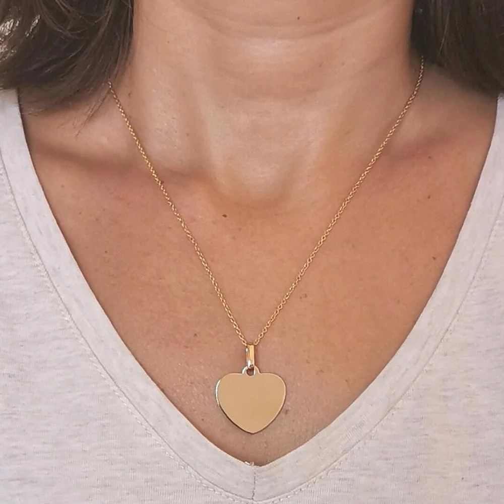 Romantique pendentif en forme de coeur plaqué or. Profitez de la première gravure diamant offerte avec un nom, une date ou encore un symbole. C’est parfait comme cadeau à offrir à une femme que l’on aime à l’occasion d’une fête, d’un anniversaire, de la Saint-Valentin ou encore pour se faire plaisir tout simplement. Une chaîne est disponible en option.