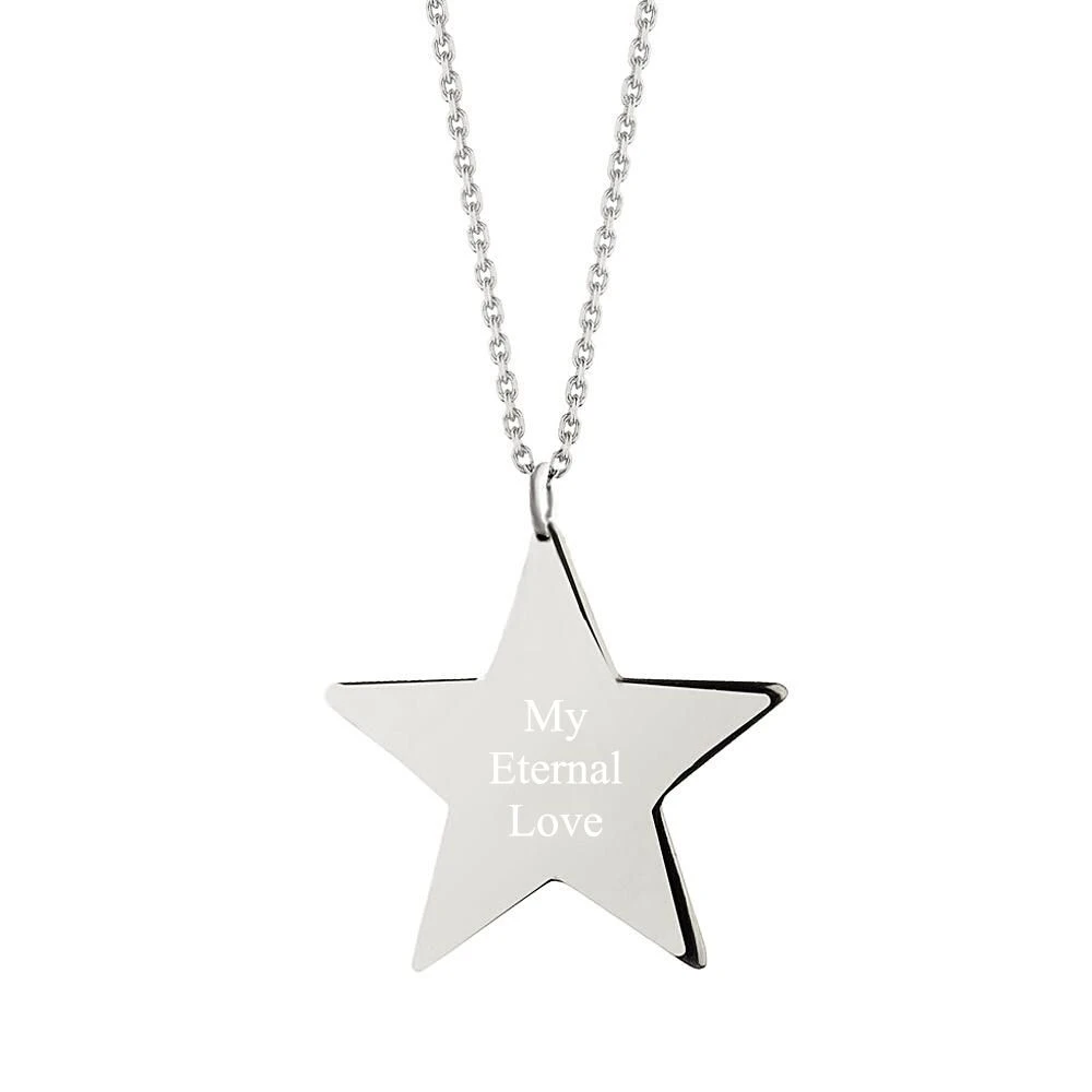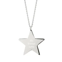 Superbe pendentif en argent brillant représentant une étoile. Ce pendentif peut être accompagné d’une jolie chaîne argent assortie en option. Personnalisable au recto/verso avec une date ou un prénom de votre choix, c’est une idée de cadeau personnalisé super pour un anniversaire par exemple. L’étoile est représentative de la vitalité et de l’énergie positive, c’est un symbole très apprécié des hommes, femmes et enfants.