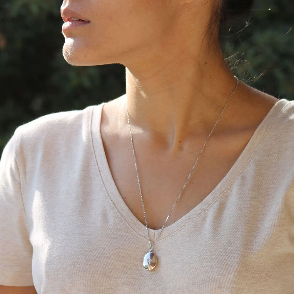 Magnifique pendentif argent personnalisĂ©. Ce mĂ©daillon ovale est dĂ©corĂ© d’une Ă©toile intĂ©grant un zirconium. Le verso peut ĂŞtre personnalisĂ© avec une gravure de votre choix, prĂ©nom, date. ArticulĂ© de façon Ă l’ouvrir et garder de jolis souvenirs, comme une photo par exemple. Ce porte photo s’accompagne d’une chaĂ®ne argent assortie. C’est une superbe idĂ©e de cadeau d’anniversaire Ă offrir pour une femme que l’on aime.