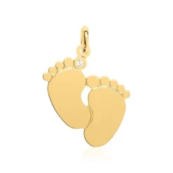 Très mignon pendentif en argent 925 doré représentant des petits pieds. Pour encore plus de charme, un des orteils est décoré d’un zirconia. Personnalisable au recto/verso avec des initiales, ce bijou est un plaisir à porter. Tendance et significatif, il fera l’objet d’un joli cadeau de noel. Accompagné de sa jolie chaîne assortie, il en séduira plus d’une.