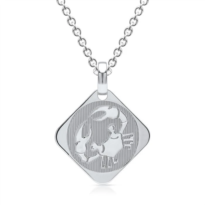 Moderne pendentif signe du zodiaque cancer gravable en argent massif 925 avec sa chaine assortie de 40,45 ou 50cm. Une gravure est offerte.