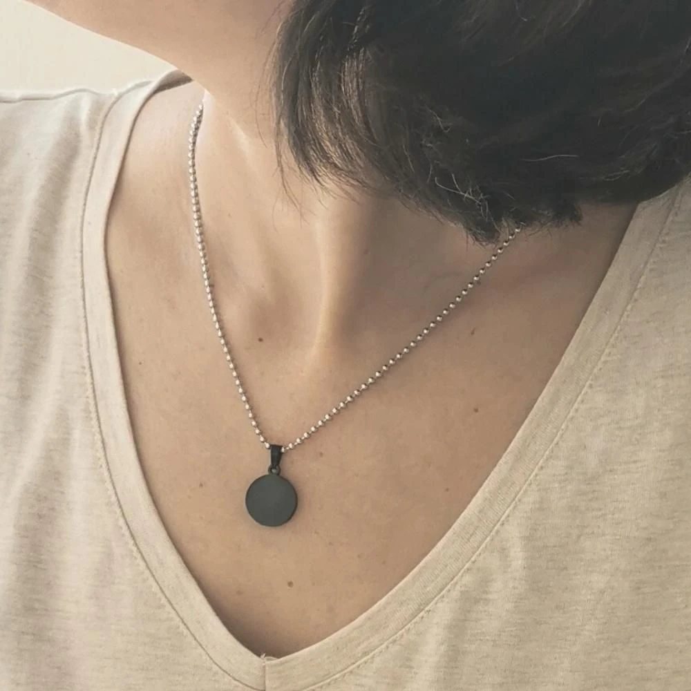 Petit Pendentif Acier Noir Rond PersonnalisĂ© – 2489