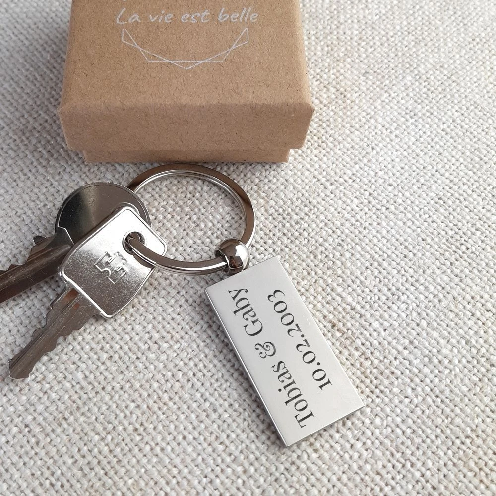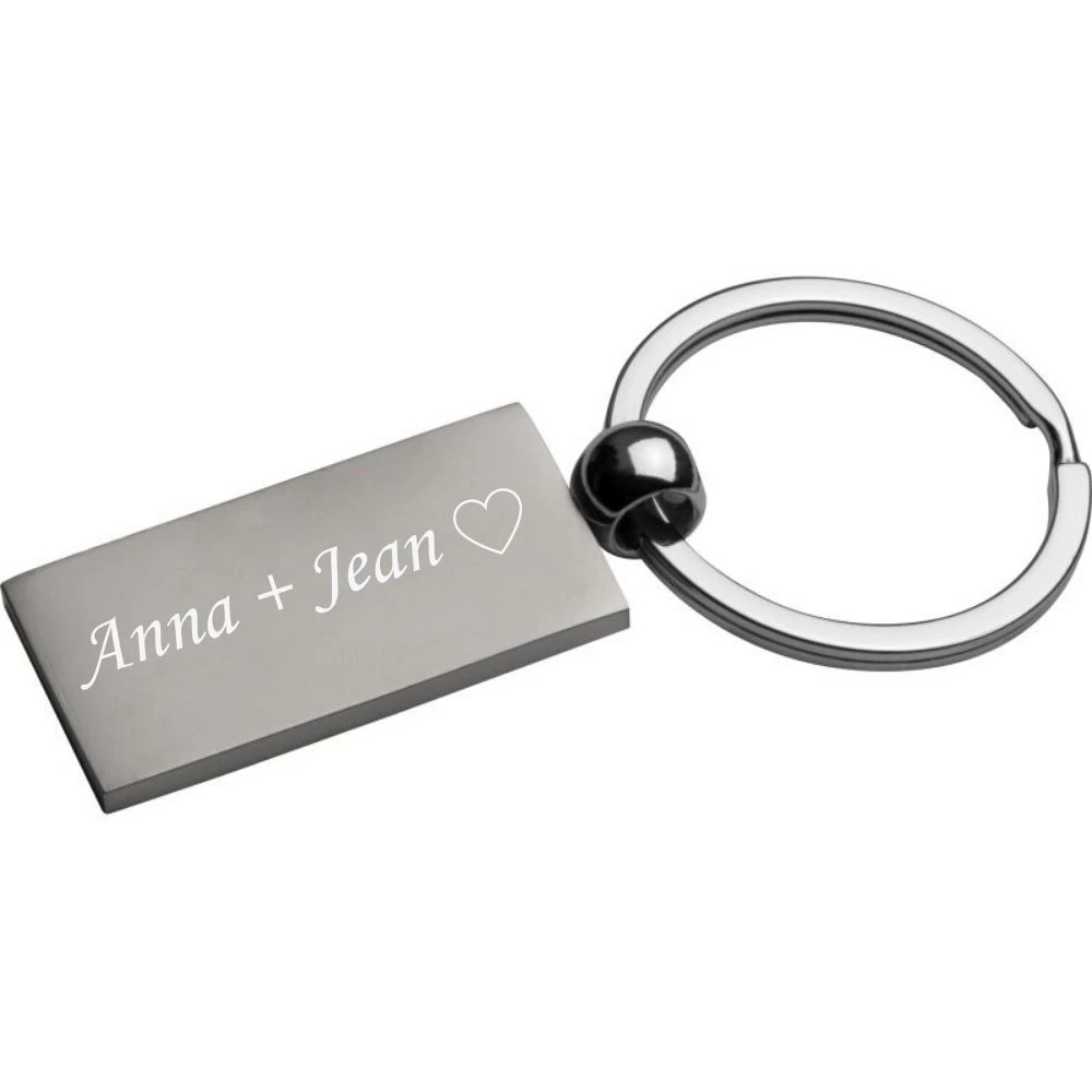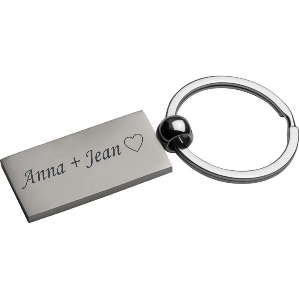 Ce porte-clĂ© en acier inoxydable mat en forme de rectangle sera pratique dans votre quotidien pour rassembler votre trousseau de clĂ©s. Il peut ĂŞtre gravĂ© de chaque cĂ´tĂ© avec un texte classique ou original, agrĂ©mentĂ© d’un symbole ou pas, faites parler votre imagination! Ce sera un cadeau toujours utile pour un ami, un collègue ou tout simplement pour vous. La première gravure diamant est offerte.