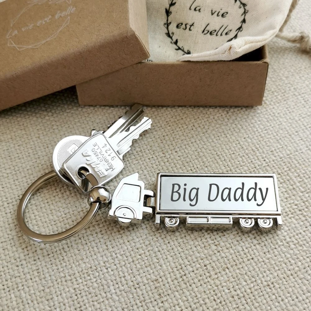 Ce porte-clé camion est un accessoire que tous les chauffeurs routiers vont adorer avoir sur leurs clés. Vous pouvez le personnaliser en y gravant une phrase ou un prénom. La première gravure diamant est offerte.