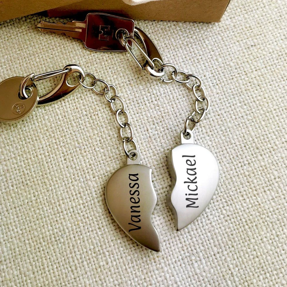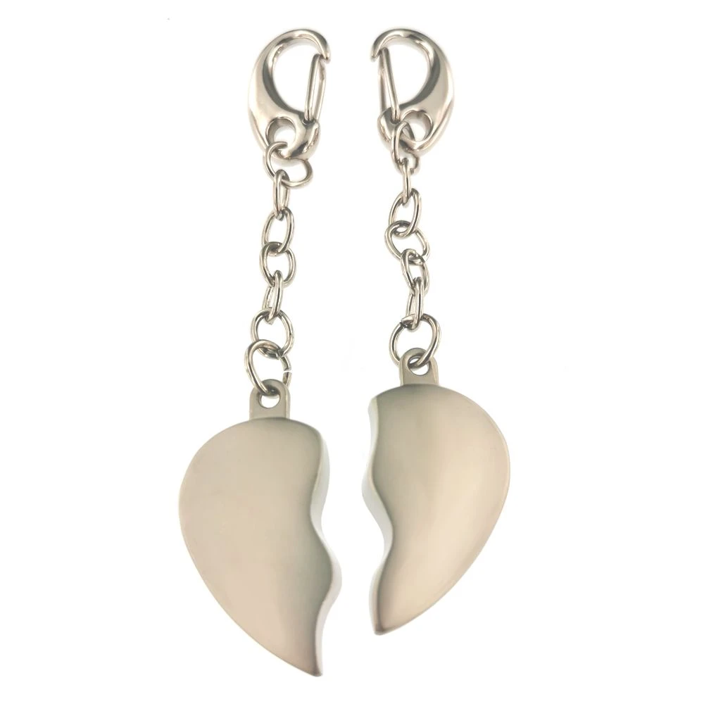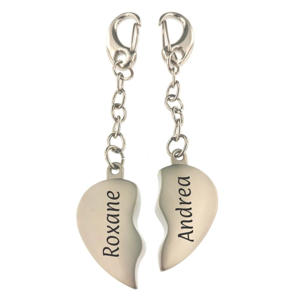 Original porte-clé « Duo cœur » en acier inoxydable, formé par deux portes clés demi-coeur bombés. Il est personnalisable au recto et au verso sur les deux parties avec une gravure diamant offerte. Les deux moitiés forment un joli cœur. C’est un cadeau unique pour tous les amoureux.