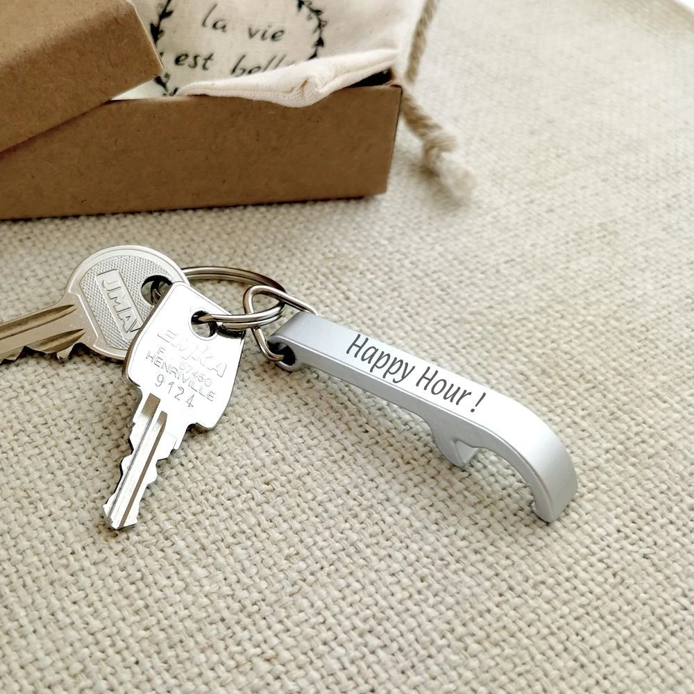 Ce porte-clé décapsuleur en aluminium léger est un objet utile et parfait pour les randonneurs ou encore les bons vivants. Personnalisable au recto/verso avec du texte ou encore un symbole rigolo comme une moustache, profitez de la 1ère gravure diamant offerte. C’est le moment de vous faire plaisir ou de faire plaisir à un proche pour une fête, un anniversaire ou encore un départ !