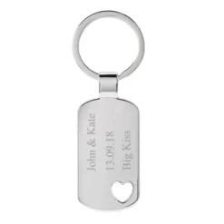 Très joli porte clé plaque rectangulaire en acier inoxydable décoré d’un cœur. Personnalisable au recto/verso jusqu’à 3 lignes au choix. La 1ère gravure diamant est offerte. C’est un superbe cadeau à offrir pour une femme d’exception.