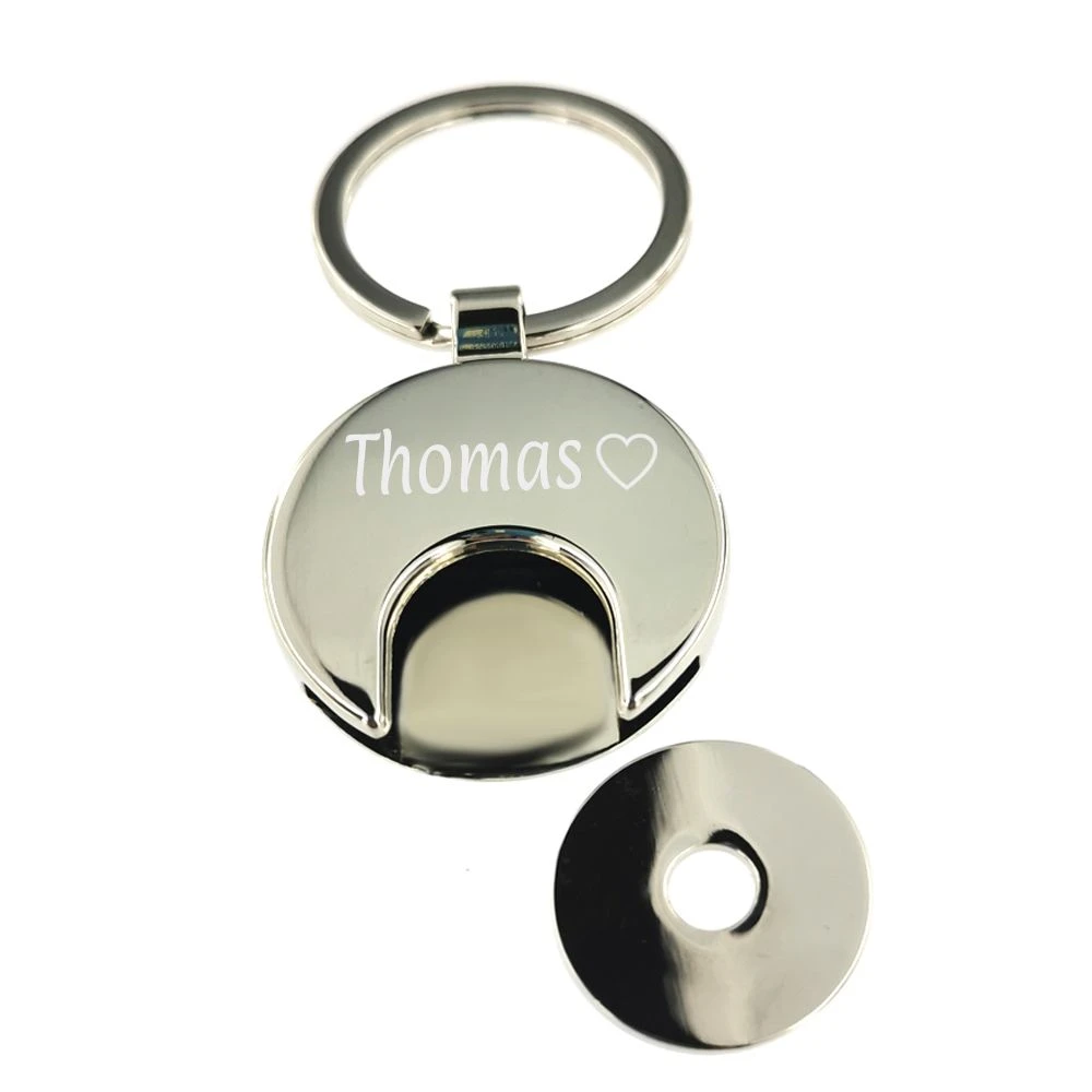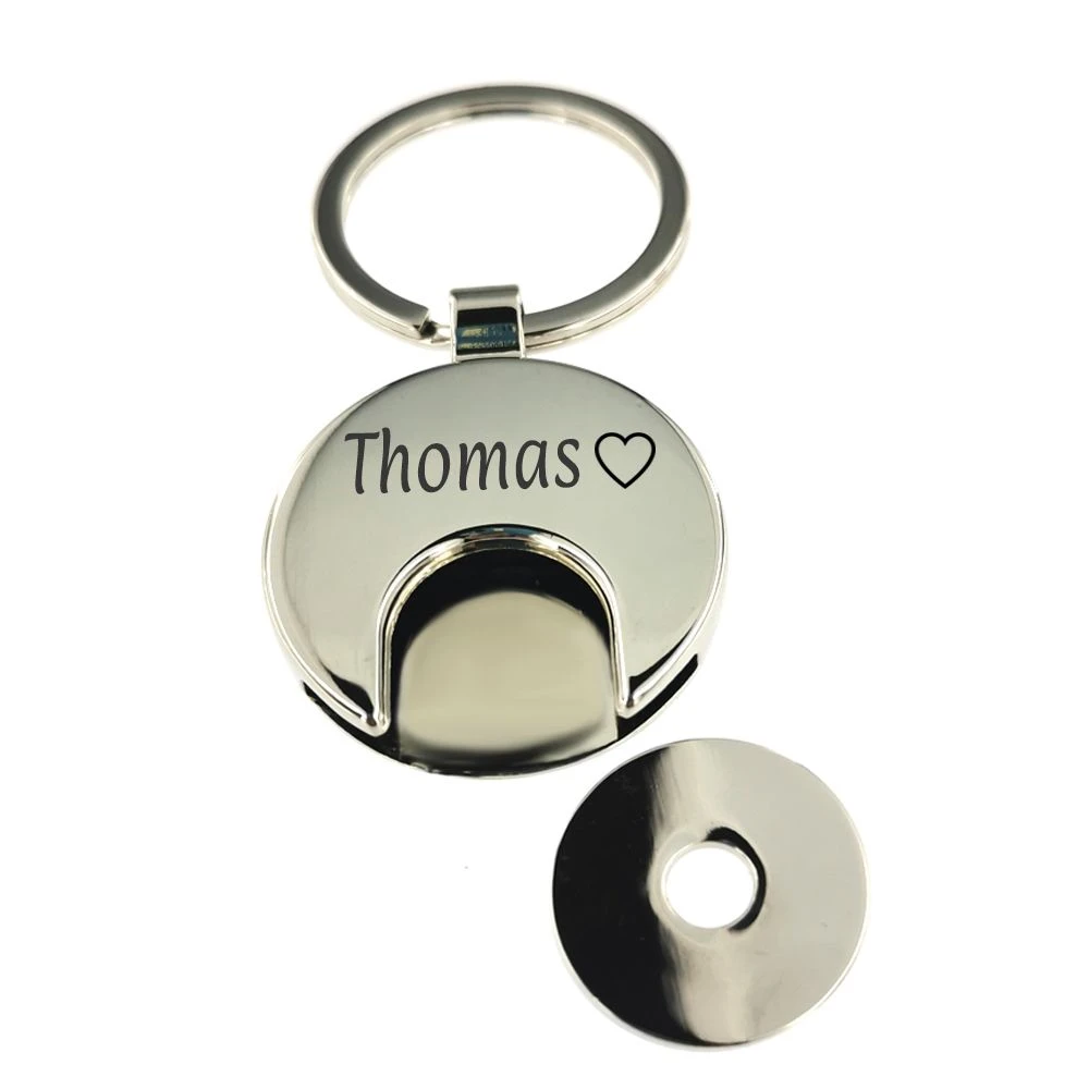 Très original et pratique porte-clés « I love you » en acier inoxydable poli avec décor incrusté en résine et son jeton à caddie. Le porte-clés est retenu par un maillon un anneau porte-clés. Le jeton en acier percé au centre s’insère dans le porte-clés qui est gravable au recto en 6 polices de style différent, la première gravure diamant est offerte.