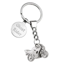 Chouette porte-clé en forme de moto en acier inoxydable. Son médaillon est à personnaliser avec un prénom, une date ou encore un symbole grâce à la première gravure diamant offerte. Offrez en toute occasion un porte-clé sympa à graver!