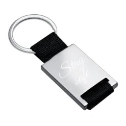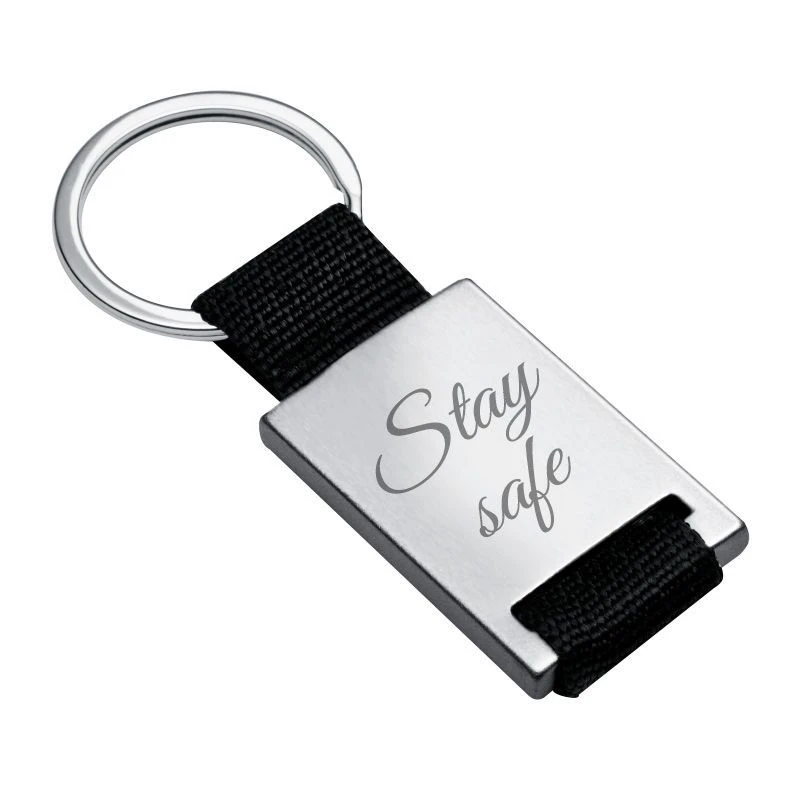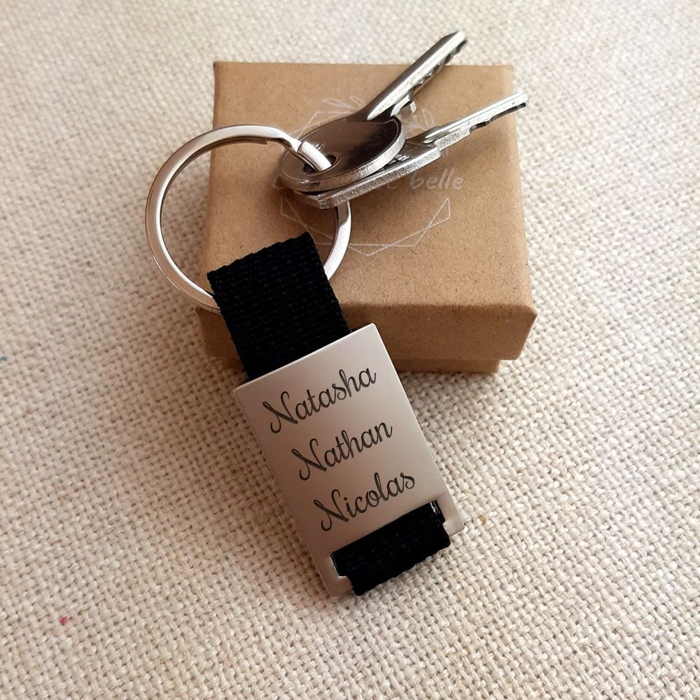 Ce porte-clé en forme de rectangle est original avec sa texture bi-matière en acier et en tissu noir. Faites parler votre imagination pour le personnaliser avec une gravure texte, date ou encore un symbole amusant. La première gravure diamant est offerte. C’est le cadeau utile par excellence pour une fête, un anniversaire ou un départ!